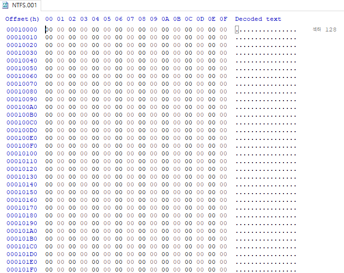 백업본 확인이 잘 된다. 해당 섹터를 복사한 뒤 시작 섹터였던 128 섹터로 이동해